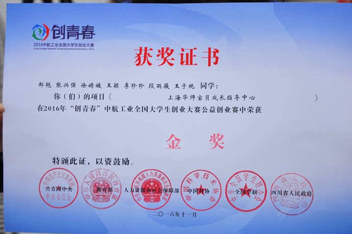 △《上海华师宝贝成长指导中心》 公益创业赛金奖(特殊教育学系毕业生郝艳等);
