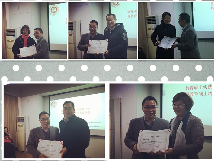 2016年11月23日下午,华东师范大学教师教育学院隆重举行了教育硕士实践导师聘任仪式。来自上海华师大二附中,延安中学,七宝中学,建平实验中学,建青实验中学,洋泾中学等名校的各学科特级教师,与教师教育学院学科与教学各专业教授齐聚一堂,共话如何建构校内与校外联合培养一名合格的教师。”聘任校外实践导师”是本学院为教育硕士开启双导师制的重要举措。