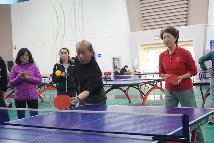 教工运动会分为6个项目。在投篮大赛中,来自5个工会小组的12支队伍在篮球场展开了激烈比拼,学部领导也参与到了比赛当中。在跳长绳比赛中,各团队配合默契。在踢毽子比赛中,老师们精湛的技术得到了淋漓尽致的展现。在传球接龙的比赛中,老师们更是开动脑筋,创造性地完成了比赛,全场气氛达到高潮。在另外两个赛场上,8名女单选手、12名男单选手以及4组混双选手参加了乒乓球比赛,2名女单选手、8名男单选手以及5组混双选手参加了羽毛球比赛,比赛在团结友爱的氛围中顺利结束。