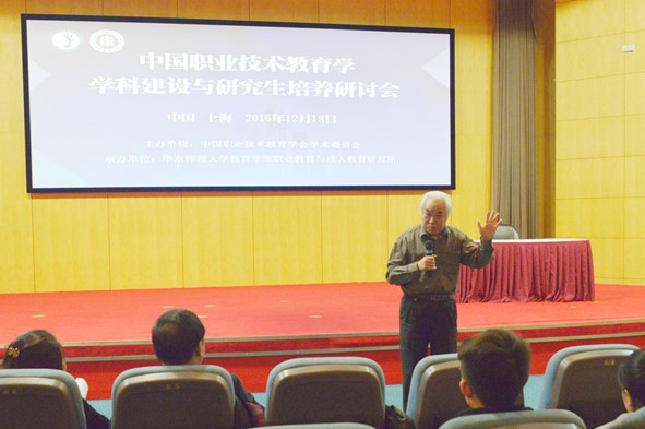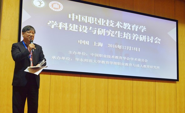 2016年12月18日,由中国职业技术教育学会学术委员会主办,华东师范大学教育学部职业教育与成人教育研究所承办的”2016年中国职业技术教育学学科建设与研究生培养研讨会”在华东师范大学科学会堂隆重举行。中国职业技术教育学会学术委员会16位委员,全国职业技术教育学硕士点、博士点单位的89名代表和206名研究生,10家教育期刊和媒体代表参加了此次研讨会。