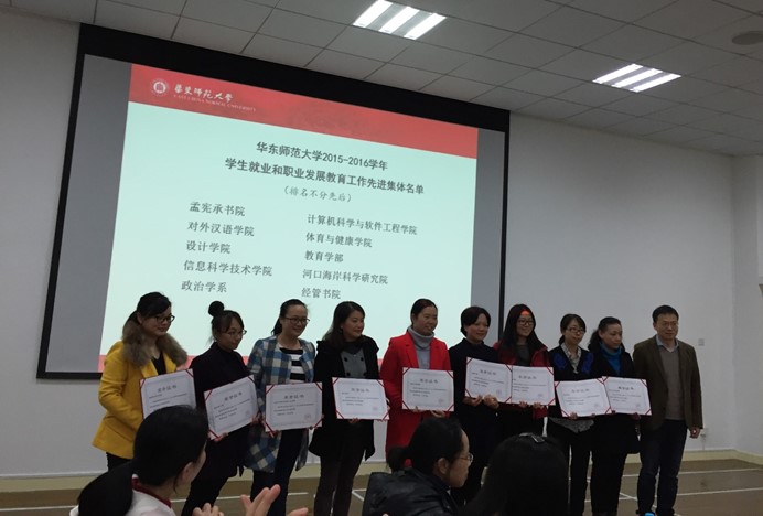 2016年12月20日,华东师范大学2016年就业工作先进表彰会暨2017年就业工作推进会在闵行校区学生之家A210顺利举行。会议表彰了在2015—2016年度就业工作中表现突出的学部、院系以及就业工作先进个人,总结了华东师范大学2016年学生就业的整体情况,并就2017年的就业工作进行安排部署。