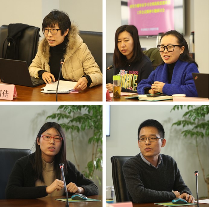 课程与教学系、国际与比较教育研究所、教师教育学院2015级研究生辅导员陈媛立足会议精神解读,围绕”培养什么样的人、如何培养人以及为谁培养人”这个根本问题,从把握研究生特点、找准辅导员定位出发,分享提高研究生思政工作实效性的思路与方法。职业教育与成人教育研究所2014、2016级研究生辅导员徐峰强调以党组织建设、学风建设、队伍建设为抓手,找准研究生思想政治教育的路径;以辅导员加强工作责任感为保障,恪守”兢兢业业、甘于奉献、奋发有为”的工作态度。
