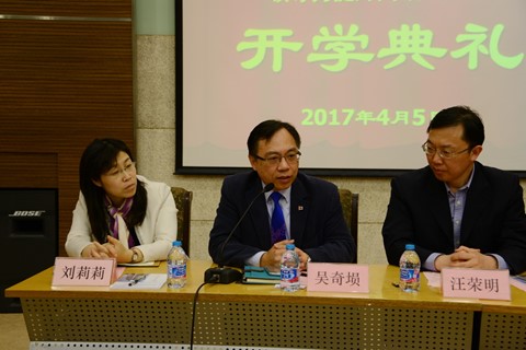 东华三院学务总主任吴奇埙则回顾了过去二十年来香港中学校长与中学校长培训中心建立的深厚友谊,自1997年起有多名东华三院的校长参加过中学校长培训中心的培训项目,而2016年华东师大与东华三院签署的战略合作协议为今后的合作提供了更多的可能。吴奇埙特别感谢我校及中学校长培训中心对战略合作协议的落实,也对我校及中心对本次东华三院校长及中层管理者领导力提升高级研修班给予的重视和关心表达了深深的谢意,期待东华三院的校长、中层管理者在学习期间,学有所得,学有所思。