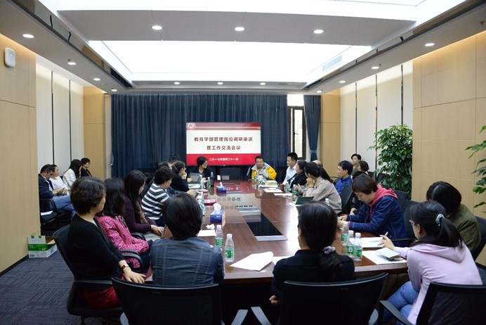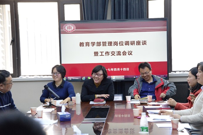 作为学校学部改革探索的践行者,在学校机构整合、管理重心下移的大趋势下,管理工作如何优化提升,如何让管理岗位教师在工作中获得成长和提升,为学部事业的发展提供更好的管理服务,教育学部一直在做积极的探索和调研。近日,学部以午餐会的形式连续召开了两场管理岗位调研座谈暨工作交流会议,近六十位来自学部机关各个部门、二十多个系所的管理岗位老师与会,学部党委书记汪海萍和分管行政领导陈向东主任莅临指导。会议由学部综合办主任邹文主持。