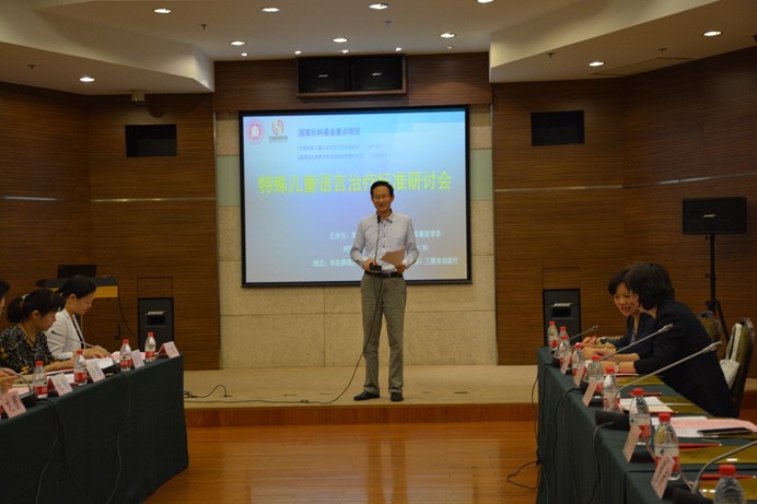 2017年5月24日下午,由华东师范大学教育学部教育康复学系组织的”特殊儿童语言治疗标准研讨会”在华东师范大学学术交流中心三楼多功能厅举行。本次研讨会就国家社科基金重点项目《学前特殊儿童语言治疗标准研究》、《脑瘫儿童语言康复的原理与方法》的最新研究成果特殊儿童语言能力评估标准、特殊儿童语言障碍的特征、特殊儿童语言康复的系统化等问题开展。