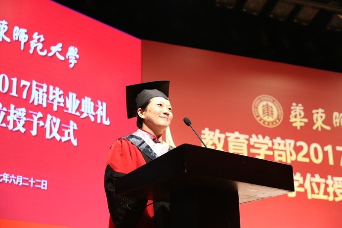 接下来,袁主任语重心长地向教育学部2017届毕业生提出3点期盼:”做变革型教师,推动和引领教育改革发展”、”做专家型领导,营造和推广先进文化”、”做创新型学者,探索和创建中国的教育学”。在讲话中,他嘱咐同学们始终秉持教育信仰、保持研究热情、坚持终身学习,既要海纳百川,又要发扬优良传统,以”千教万教,教人求真;千学万学,学做真人”为追求,通过自己的坚持和努力,探索应对未来的中国经验,以及解决人类共同问题的中国答案。