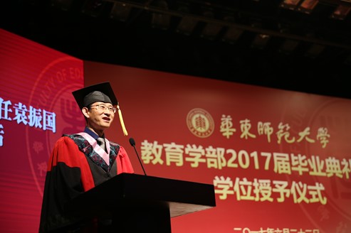 同学们,我们正处于一个变革的时代,处于一个继往开来的时代。华东师大历来以创获智慧、陶熔品性、促进民族和社会的发展为使命,教育学部更以培养未来教育的引领者为己任。以先进的理念、正确的观点、科学的方法引领未来教育,既是教育学部人才培养的目标,也是各位脸上流露出来的自信和决心。