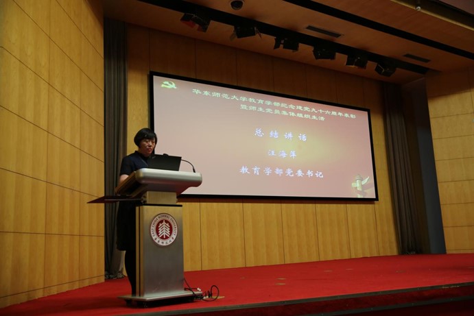 在纪念建党九十六周年之际,教育学部举行师生党员集体组织生活、表彰先进,将有利于进一步激发党员干部干事创业的内生动力,为大力提升人才培养质量和学术研究水平,为建设中国特色、世界一流的教育学科作出更大贡献,以优异成绩迎接党的十九大的胜利召开。