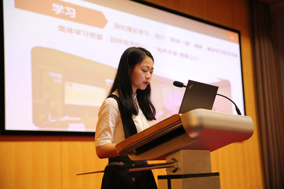 “先进基层党组织”代表、教育学部机关第一党支部书记蒋瑾分享了该支部在建设”学习型、服务型、创新型”党支部过程中的具体做法,分享了该支部结合支部特征开展的丰富多彩的党建活动。