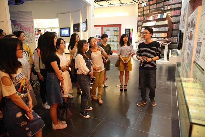6月26日下午14:00,浙江师范大学教师教育学院师生一行到达华东师大校园,在学部老师和志愿者的带领下依次参观了校史馆、文科大楼、教育创客空间。在校史馆,胡琨老师就华东师范大学的历史沿革向来访师生进行了生动而又详尽的介绍,同学们纷纷为华师大悠久而厚重的历史积淀而叹服。在文科大楼前,孙梦老师介绍了学部的历史及办学特色,着重展示了二楼的学生学习空间,那里摆放着最新最前沿的书籍供学生随时取悦。在教育创客空间,白雪源老师介绍了创客空间的功能及特色。该空间以建设高校示范性”教育创客孵化营”为目标,通过开展系列创新创业活动,为创业团队提供资金、政策和咨询的支持,激发师大学子在教育领域的创新创业意识。目前已经入驻创客空间的教育学部学生创业团队——猴有戏儿童戏剧教育的团队成员刘畅向来访师生讲解并展示了他们的创业项目。