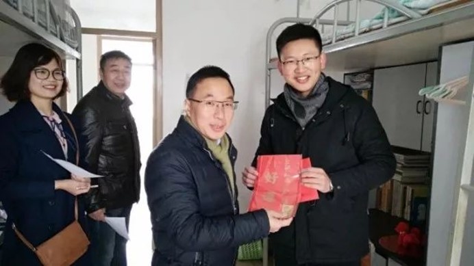 万明霞书记和周彬院长赠予留校同学新春礼物