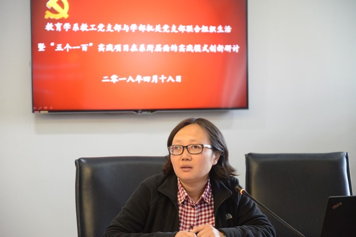 教育学系教工支部副书记董轩老师汇报教育学系”五个一百”工作