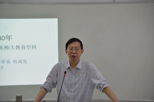 2018年6月7日上午,主题为“我们这40年——‘新时期’来的华东师范大学教育学科”的学术讲座在文科大楼104室举行。本场讲座特别邀请了教育学系教授、博士生导师、中国教育学会教育史分会副理事长兼秘书长、“马工程”首席专家杜成宪教授主讲。教育学部2018级佛年班同学及其他院系多名师生到场聆听,佛年计划先修课程首席专家程亮教授到场并介绍了杜成宪教授。
