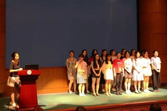 整场汇报以温情为主线,暖心气氛氤氲在报告厅上空,不舍之情萦绕在营员们心中。有小组唱道:”表示丽娃河畔爱之坪里,是不舍留恋;表示思群堂逸夫楼点滴感动,是眷眷流连”;有小组诵读:”我们不仅能够相亲相爱,更能够风雨同舟”,无一不道出了对华师大、对教育学部的深切热爱。营员们千言万语汇成一句深情表白:”爱在华师大,我想留下来!”