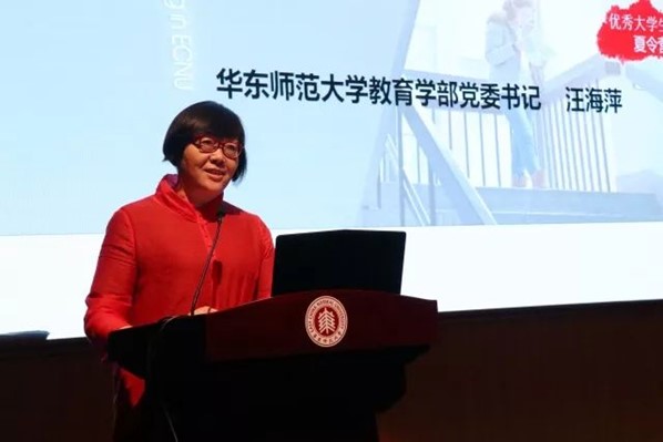 教育学部党委书记汪海萍教授为本届夏令营作总结讲话。汪书记首先感谢营员们对华东师大和教育学部的高度评价与诚挚感情。她指出,华东师大之所以是一所好大学,是因为拥有卓越、公平、优雅等三个方面的特质:卓越,是指她自觉向上向善、主动担当时代使命的精神品格;公平,是指她不仅在教育现代化核心理念的层面上理解公平,更是关注和助力每位学子的成长与进步;优雅,则是卓越与公平的结合。在优雅学府中培养栋梁学子素来是师大老师们的幸福与追求。