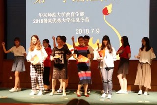 7月9日是本届夏令营活动的最后一天。上午8:00,在教育学部党委副书记沈晔老师的主持下,营员们对为期四天的夏令营活动进行了汇报总结,各小组采用歌舞、朗诵、情景剧、日志展示、视频演出齐上阵等形式,发自肺腑地分享了诸多感想与收获。
