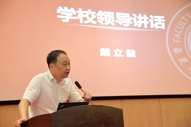 戴立益副校长代表学校发表讲话。戴校长首先祝贺教育学部过去一年在学科建设、人才培养、科学研究、社会服务、党的建设等各方面取得的优异成绩,并宣布了在刚刚结束的2018年学校教学科研单位整体考核中教育学部获得第一名的重大喜讯。而后,戴校长就学校基础教育集团的组建情况、工作进展及未来建设展望等方面做了详细介绍。华东师范大学基础教育集团以“卓越、引领、服务、担当”为宗旨,依托学部所辖的教育部中学校长培训中心、教师教育学院、开放教育学院及学校其他单位作为合作理事单位,现已在全国多地与19所学校签约合作办学。最后,戴校长向学部教师们表达了真切的祝愿与节日问候,并发出诚挚邀请,欢迎学部教师以自身的专业优势,切实参与到基础教育集团的建设工作当中,为推动集团专业化发展,提升华东师范大学在基础教育领域的影响力贡献力量。
