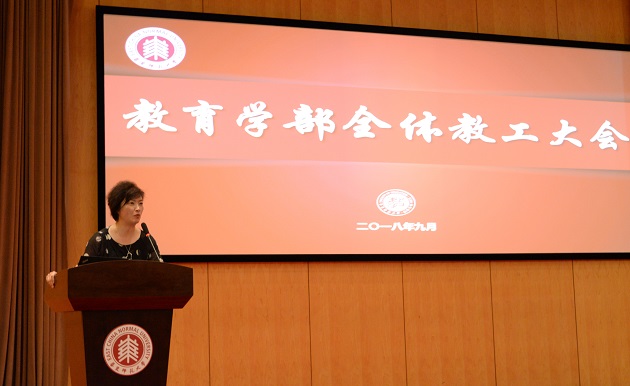 9月19日下午,教育学部新学期全体教工大会在科学会堂举行。副校长戴立益、学部主任袁振国、党委书记汪海萍等党政领导班子成员、各事务部及所辖单位的近300位教职工出席大会,会议由学部党委常务副书记兼副主任黄瑾主持。