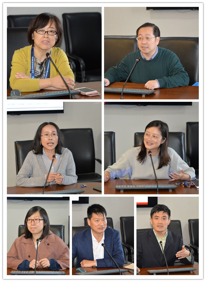 在中期检查环节,四位第三批全英语课程建设项目的负责人,分别从课程建设进展、预期成果以及下一阶段改进方案等方面进行汇报阐述,并重点就开课过程中遇到的困难与问题与评委们进行了交流。评委们根据学部全英语课程建设方案,审议表决通过了四门课程的中期检查。