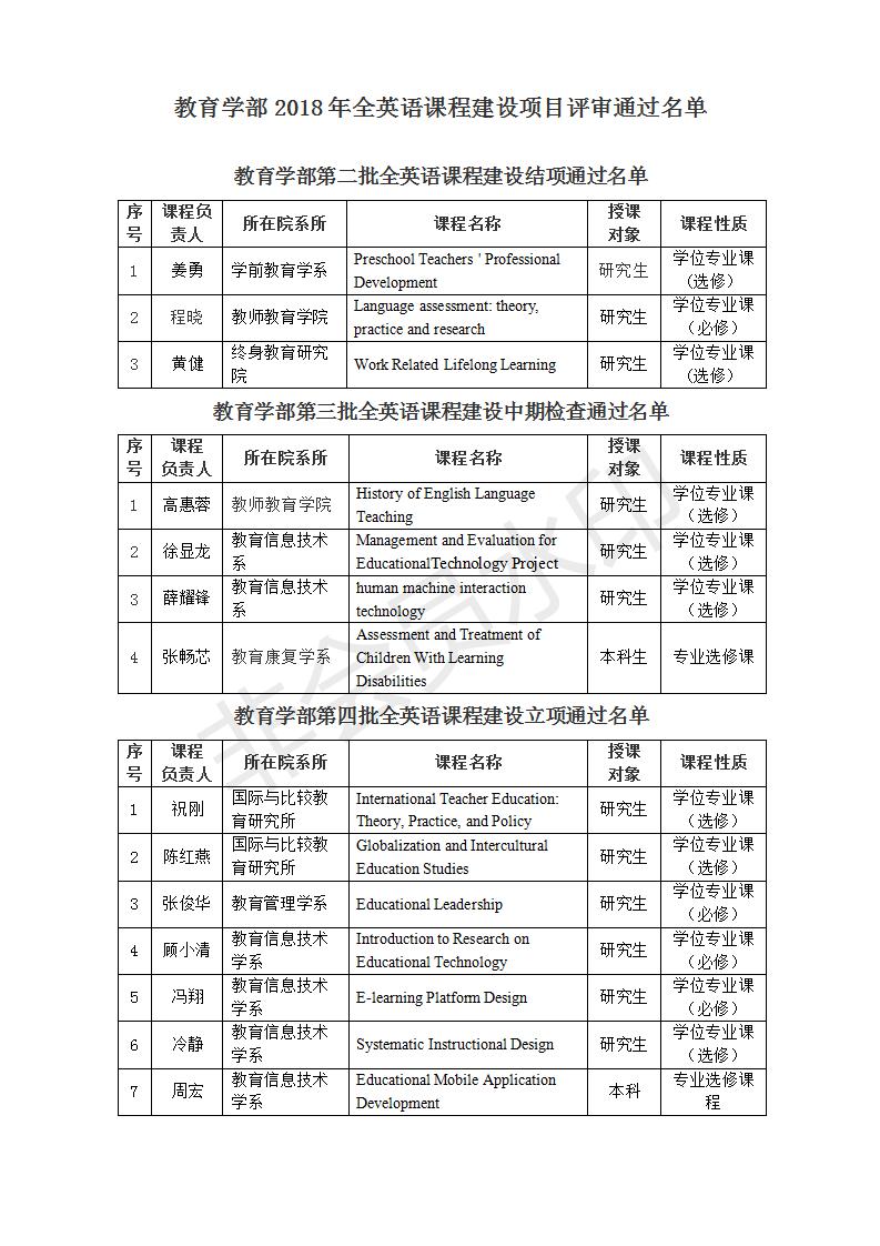 自2015年起,教育学部投入专项资金,持续建设了四批共计19门全英语课程,促进了本科生和研究生的国际学术交流能力提升,提高了课程建设的国际化水平。