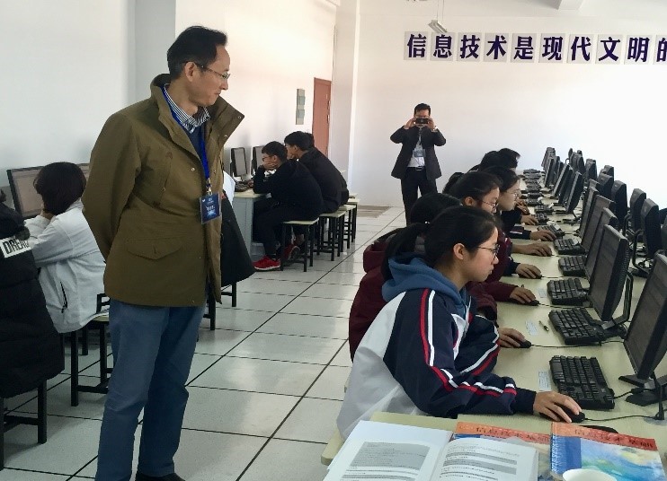 11月19日,华东师范大学教育学部主任袁振国教授、教育学系主任黄忠敬教授,以及苏州市教育局副局长李婧娟、德育处处长徐洁等一行到苏州市相城区陆慕高级中学实地走访。就施测前的相关准备工作进行了实地指导,并现场观看了学生测试的全过程。袁振国主任在与中小学校长、测试主任、学校协调员交流过程中,进一步说明了本项目测评的意义和价值,并就测评过程中可能存在的问题进行了沟通。随后,袁振国主任同教育局相关人员就测评后的总结研讨、项目成果梳理以及明年的相关测评等工作进行了深入探讨,并达成了共识。