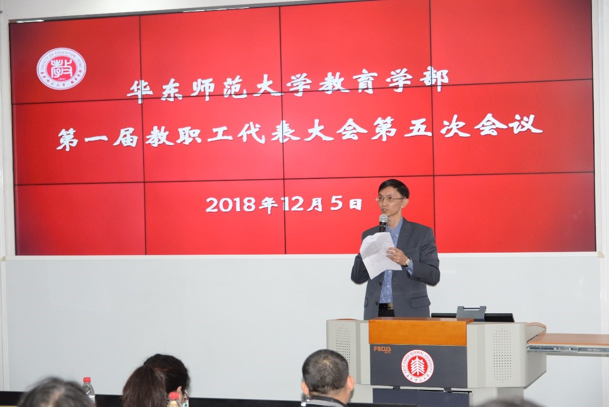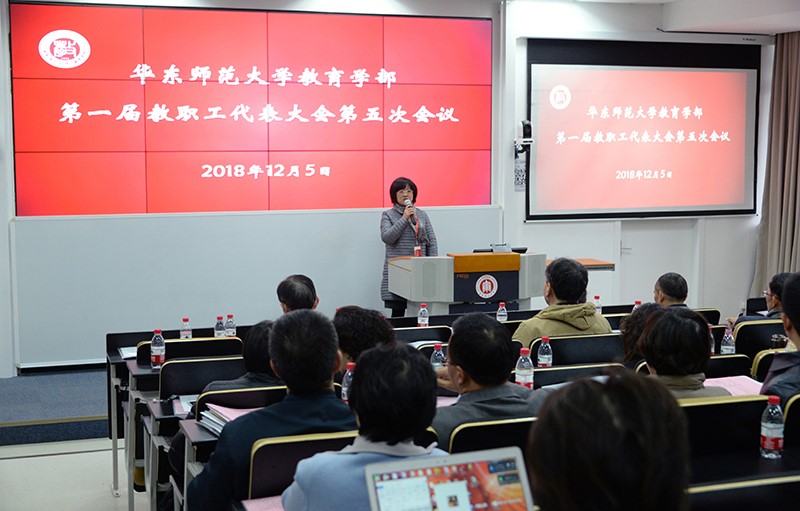 12月5日,教育学部第一届教职工代表大会第五次会议顺利召开。学部主任袁振国、党委书记汪海萍等60名正式代表及相关院系所党政负责人作为列席代表参加了会议,会议由党委副书记万明霞主持。