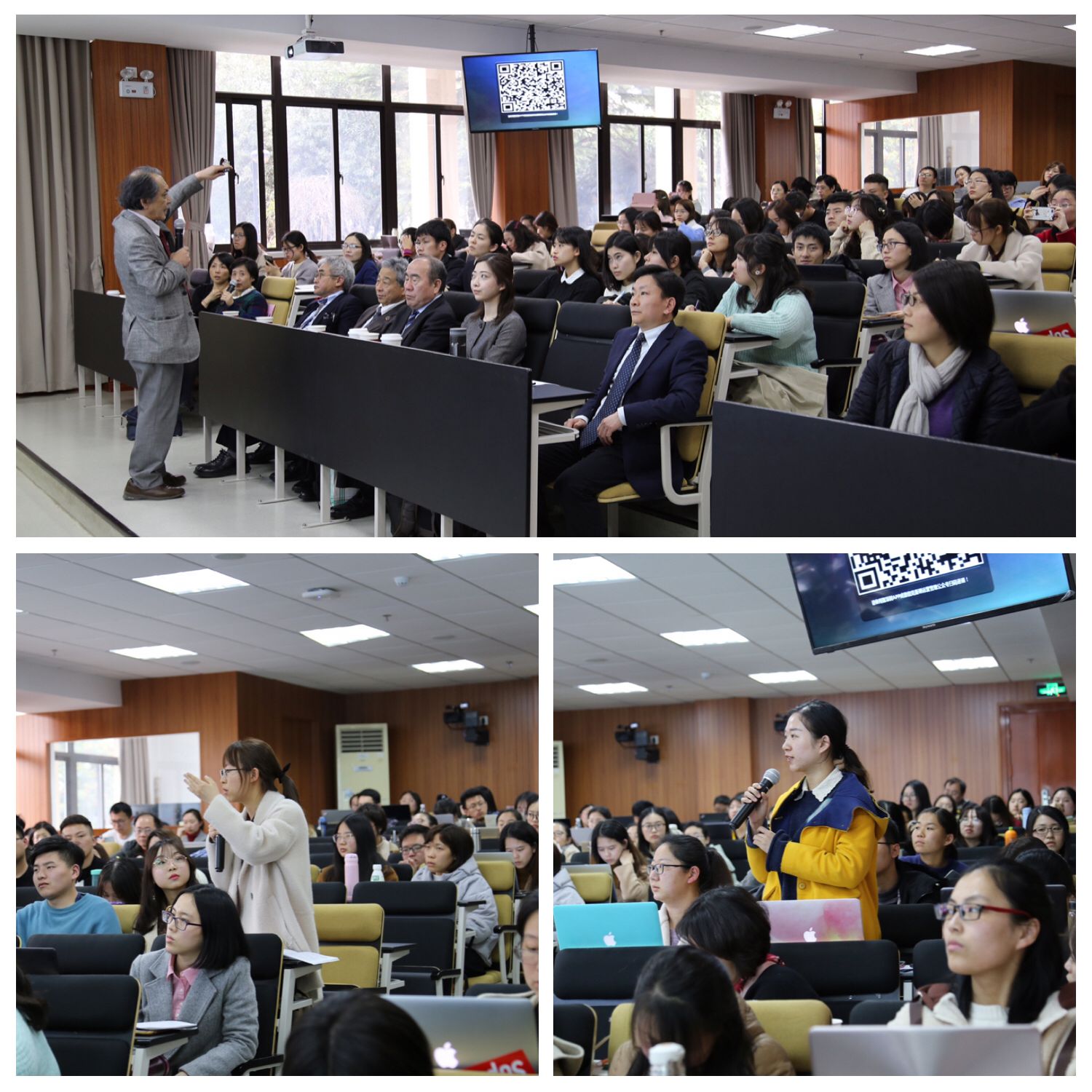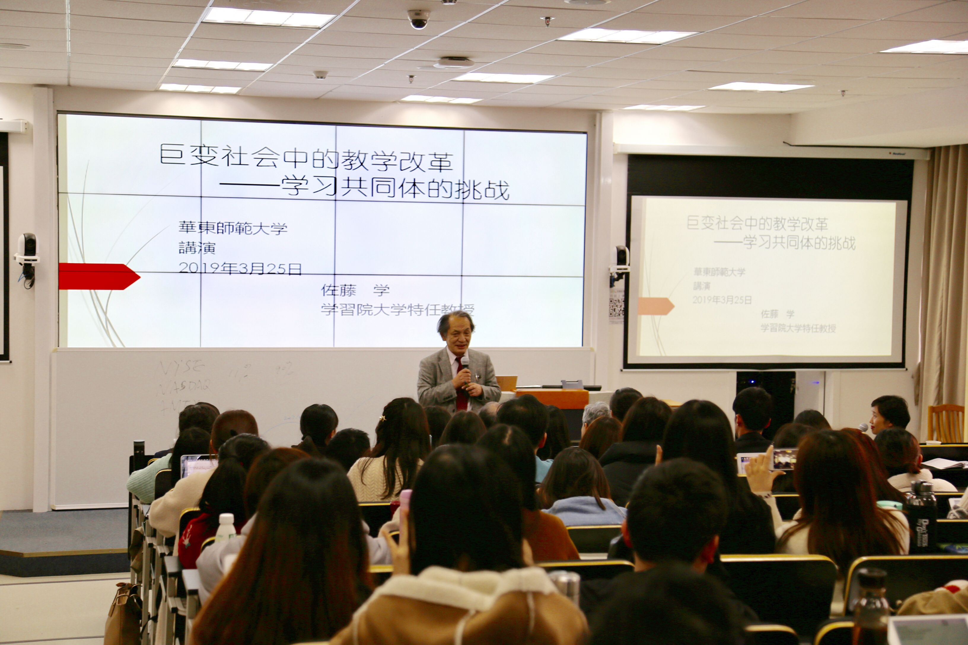 下午14时,佐藤学教授首先为我校师生就 “剧变社会中的教学改革:学习共同体的挑战” 这一主题做了精彩讲座,与大家一同探讨了:SDGs与Industry4.0时代需要什么样的教育?、教育企业化将带来怎样的危机?、不同国家学习共同体的现状等问题,并与参加讲座的师生亲切互动,讲座由教育学部国际事务部主任杨福义教授主持,教育学部沈晓敏教授为佐藤学教授做现场翻译。讲座现场座无缺席,交流气氛热烈。