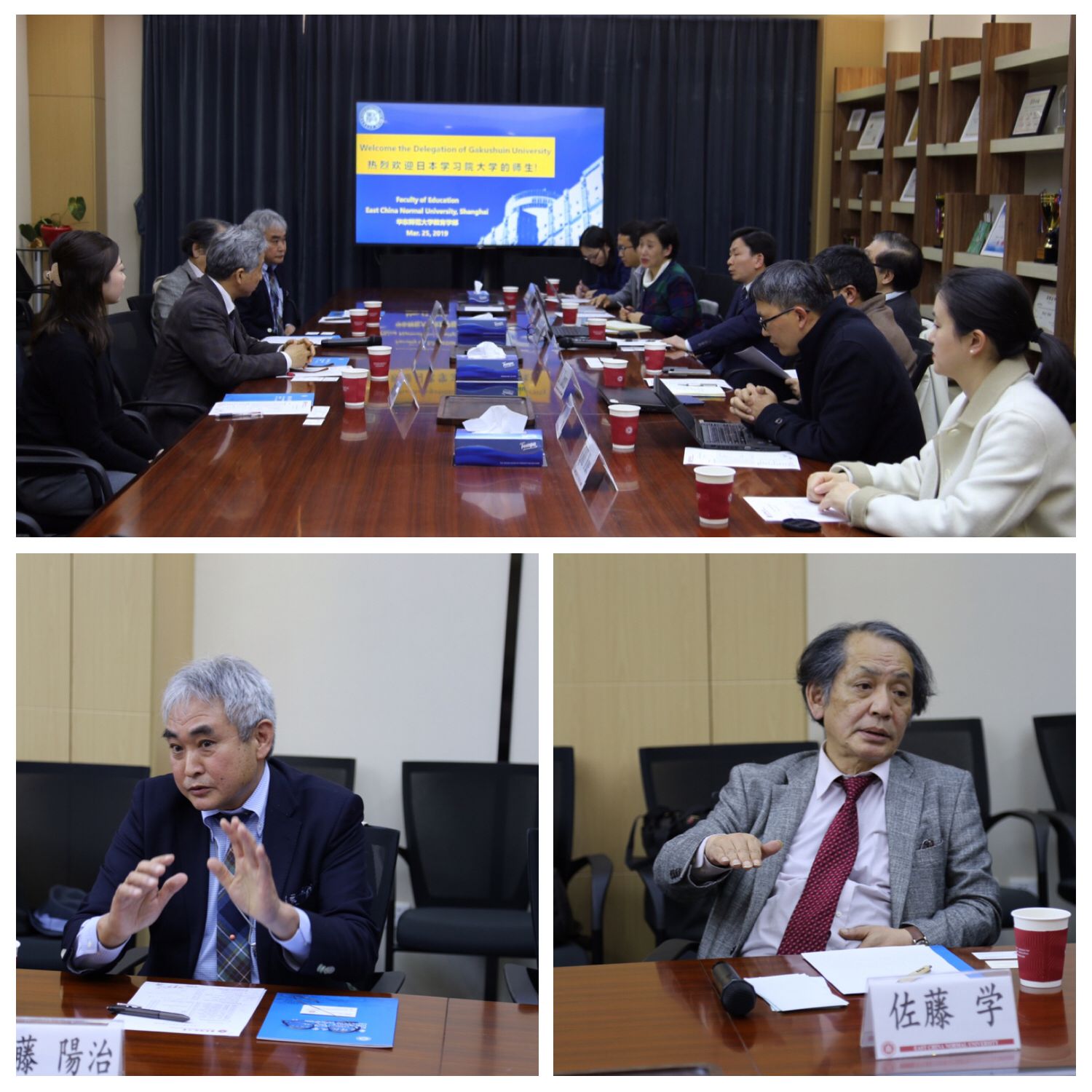 日本的学习院大学起源于1847年日本天皇在京都设立的学习所,因大部分的皇室以及战前日本的贵族阶级华族就读于此校(朝鲜李氏王族以及爱新觉罗溥杰也曾留学于此校),被公认为日本的“贵族/皇族学校”,在战前是代表地位与身份的著名学府。1947年转变为向平民开放的私立教育机构。现如今,学习院与东京五大名府明治大学、青山学院大学、立教大学、中央大学、法政大学齐名。2013年学习院大学力邀时任东京大学教授的佐藤学先生、諏访哲郎教授等创建教育学科,隶属于文学部,主要培养小学教师。现有专职教师12名,本科生约150名。教育学专业强调培养“学习的指引者和组织者”,课程以体验型和讨论型教学为主,尤其注重师范生的自然体验。自2015年起,每隔2-3年佐藤学教授带领教育学科师生来上海访问,由教育学部沈晓敏教授安排他们观摩上海小学的教育教学活动,并来我校开展师生交流。