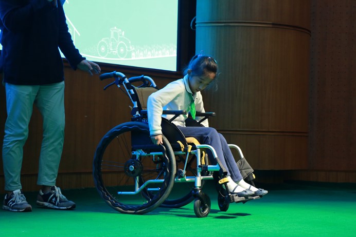 之后,上海市残疾人辅助器具资源中心的老师详细介绍了关于辅具的常识,并邀请同学上台穿戴辅具,体验坐轮椅、拄拐杖等残疾状态。同学们在使用辅具的同时,分享了参加本次活动的感悟。