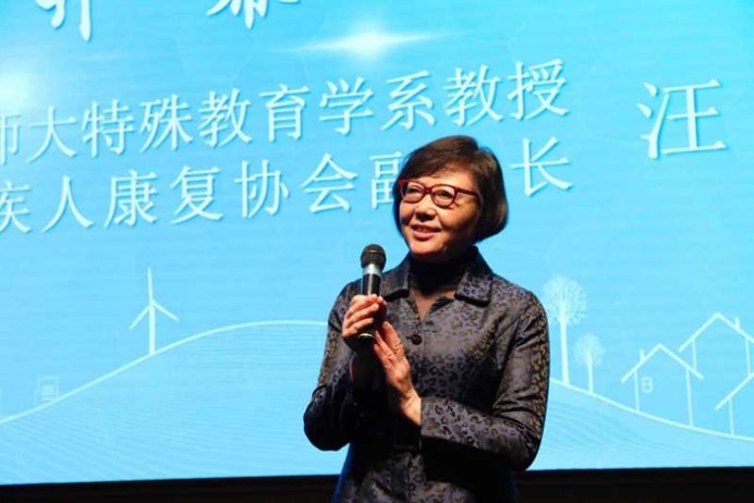 会议伊始,华东师范大学特殊教育学系教授、上海市残疾人康复协会副会长汪海萍为活动致辞。汪老师指出,如何看待残疾人是衡量一个社会文明程度的指标之一。她强调,残疾人和普通人是一样的,是平等的,我们不能用缺陷思维去看残疾人。有幸的是,在党和国家的关心和帮助下,我国残疾人事业不断发展,人们对残疾人的态度从拒绝转变为接纳,残疾人也逐渐能从家中走入社会、融入社会。