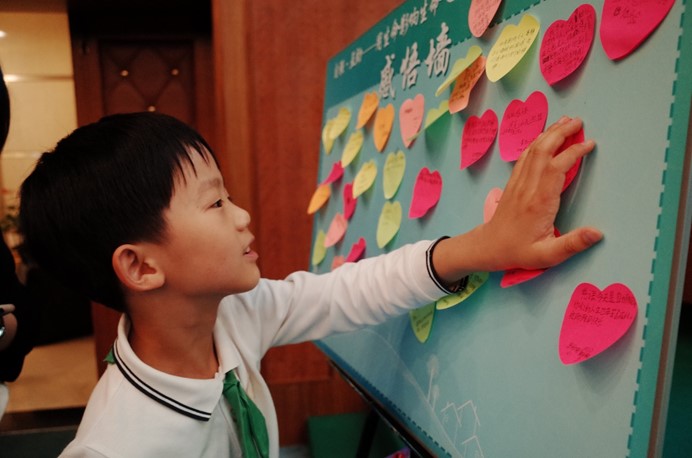 值得一提的是,本次活动也是教育学部推进“大中小德育一体化”的重要举措之一,除了学部各年级各专业学生代表,华东师大附属小学、长宁实验小学、金洲小学的100多名学生及家长也一同参加了活动。活动分成“生命教育”宣讲、辅具体验、感悟分享等三个环节进行。