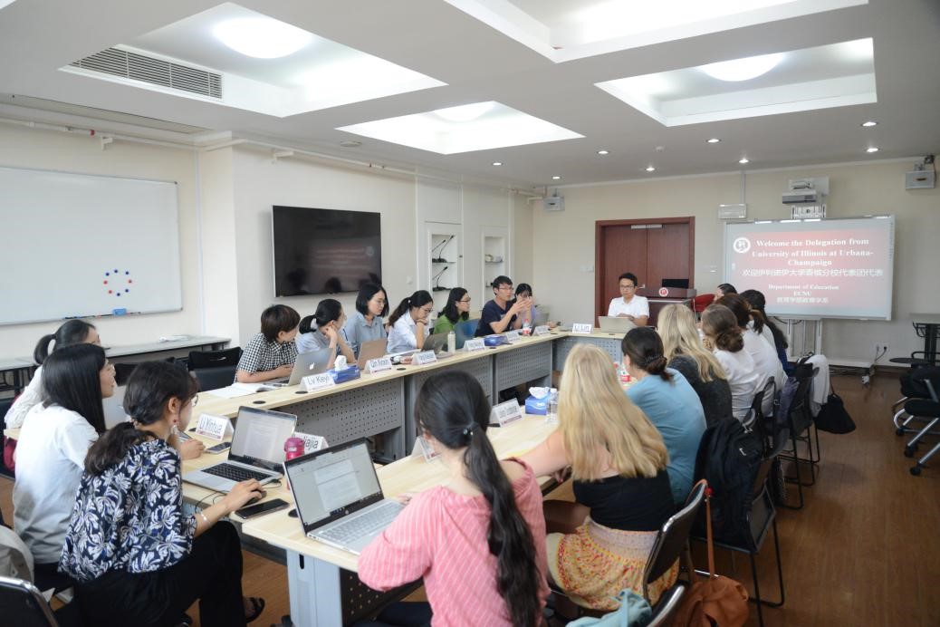 2019年6月2日至8日,华东师范大学教育学部与伊利诺伊大学香槟分校教育学院开展为期七天的国际学术周活动。伊利诺伊大学Nicholas C. Burlules教授、Liuwei博士带领8位学生来访交流,教育学部卜玉华、王占魁、王丽佳、刘世清、李林、李林、高星原、董轩、程亮、彭新强等老师以及30余位学生参加相关活动。本次系列活动由教育学系、基础教育改革与发展研究所承办,包含师生座谈会、前沿报告、学校考察以及文化参访等,吸引学部各系所师生参与。