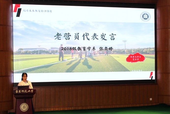 作为营员代表,华南师范大学曾丹英同学在发言中表达了对学部领导、老师、志愿者同学的深深感谢,对学部教学事务部、学生事务部等职能部门的辛勤工作和暖心服务称赞不已。她坦言,夏令营生活虽然短暂,但是真的让同学们领略到了“爱在华东师大”和“学在华东师大”的真谛,坚定了来师大教育学部求学的信念和决心。“感谢华东师大,感激教育学部,感恩夏令营。未来可期,让我们来年再会!”曾同学的发言表达了营员们一致的心声。