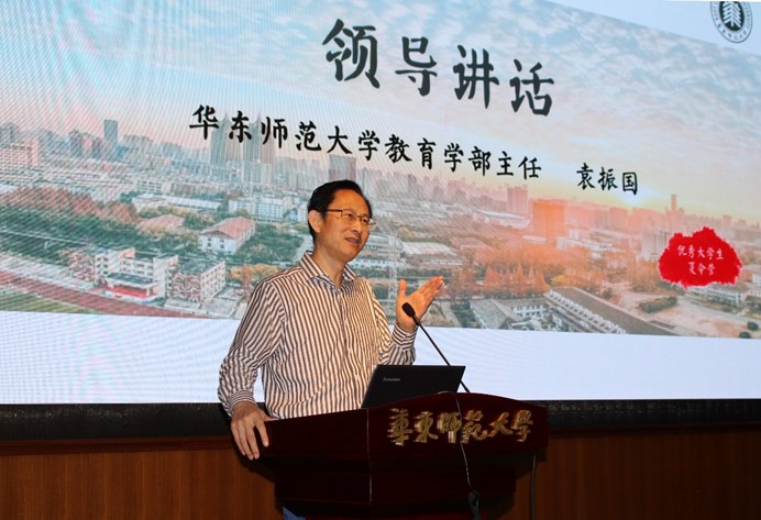 教育学部主任袁振国在开营仪式上讲话