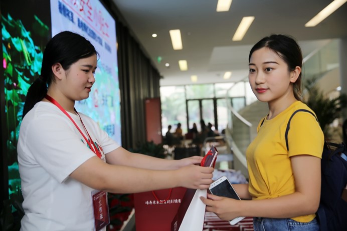 志愿者同学为营员发放学部礼包