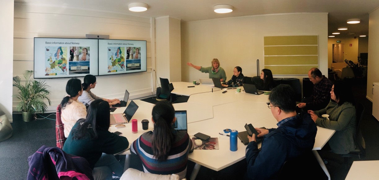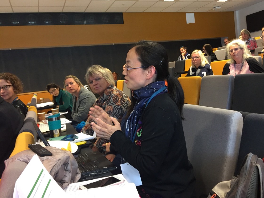 5月27日,西挪威应用技术大学组织了博士生论坛,为两校师生提供进一步的交流平台。双方师生分组讨论,交流了各自的研究领域与研究课题。论坛期间,何敏老师应邀做了题为《进行学前教育研究的可能性》的学术报告,介绍了中国学前教育研究的现状、问题与解决思路,并以安吉游戏为例,呼吁中-挪学前教育研究者合作共赢,引起在场学者的强烈共鸣。
