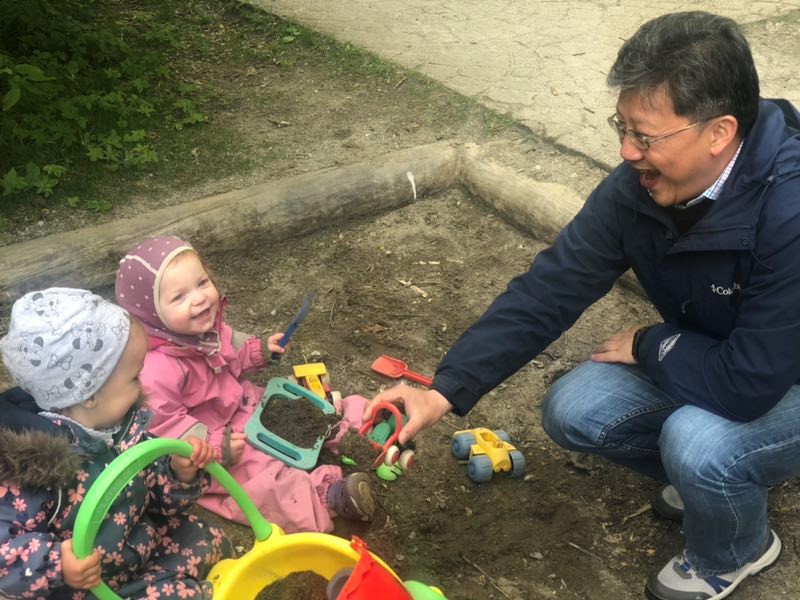5月28日,教育学部师生一行进入挪威社区,参观了一所挪威典型的家庭式幼儿园——Tveitevannet Kindergarten。相异的语言没有成为沟通的屏障,当地幼儿园热情接待了代表团,园长详细介绍了幼儿园的儿童观、教师观及幼儿教育特色,并安排了与幼儿共进早餐、观察集体阅读活动、观摩幼儿参加户外混龄活动等内容。挪威幼儿园尊重儿童、亲近自然、鼓励探索和冒险等教育理念,以及一日生活中的渗透式教育,令身临其境的学部师生为之动容。