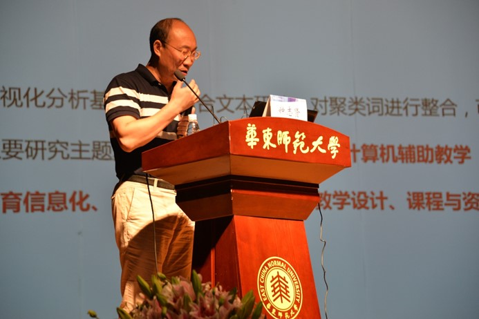 江西师范大学钟志贤教授从”度””智””道”三个角度分别概述了祝智庭教授的学术思想,指出祝教授具有广泛的学术影响度、研究合作度、主题聚合度,在计算机辅助教学、教育信息化与信息化教育、教师教育等多个领域具有重大贡献,并贯彻了深刻钻研、彻底洞悉、至诚尽心的学术品格。钟教授思维活跃,风格幽默,分析透彻,引发了与会者的笑声与掌声。