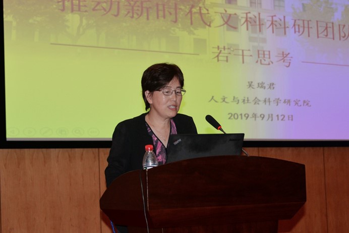 校人文与社会科学研究院院长吴瑞君作”推动新时代文科科研团队建设的若干思考”报告