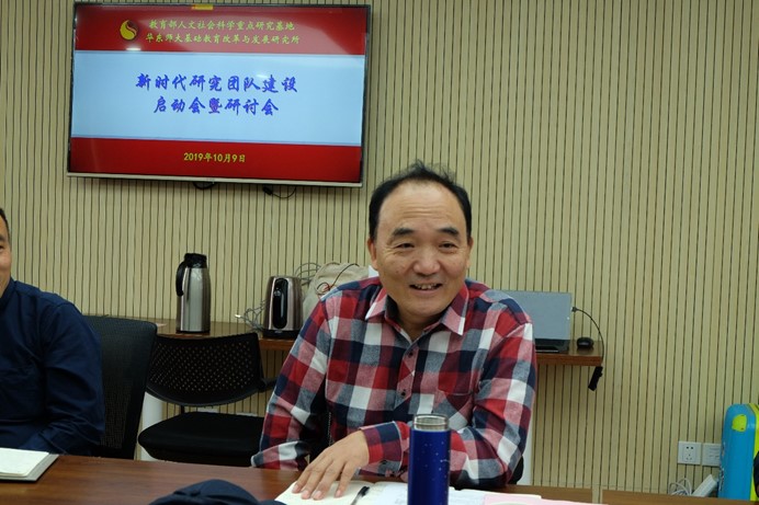 此次会议主要是围绕华东师大基础教育改革与发展研究所新时代研究团队建设的讨论展开。会议分为两个部分,上半场是新时代研究团队建设启动会,下半场是新时代研究团队建设方案研讨会。