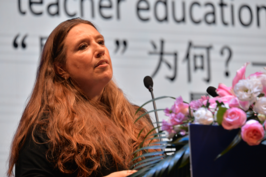 英国伦敦大学学院教育学院教授、伦敦大学学院基础教育教师教育负责人Clare Brooks作了”‘质量’为何?——对早期教师教育领域”质量”共识性理解之追问”的第二场主题报告。Clare指出”质量话语”非常复杂,是一个需要不断展开对话、并提出”正确问题”的过程。
