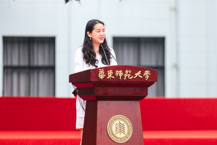 新竹高于旧竹枝,全凭老干为扶持。除了有师长的殷切嘱托,已在社会各个领域颇有建树的学长学姐们也为2020届毕业生送上了祝福和叮咛。作为学部特殊教育学系2000届校友,毕业20周年的上海嘉定区成佳学校党支部书记、校长张春燕老师专程赶赴典礼现场,向同学们讲述了她在特殊教育领域躬行实践的成长故事。她寄语学弟学妹们:要”坚持善良本色、守住育人初心,甘于平凡岗位、保持积极姿态,心怀远大理想、不负责任使命,”快速成长为一名新时代”四有”好老师,与她一起”努力让每个孩子都能享有公平而有质量的教育”,共同描绘新中国教育事业蓬勃发展的碧海蓝天。张学姐极具感染力的讲述震撼了每位毕业生的心灵,为他们未来的发展道路进一步指明了方向。