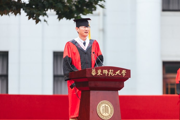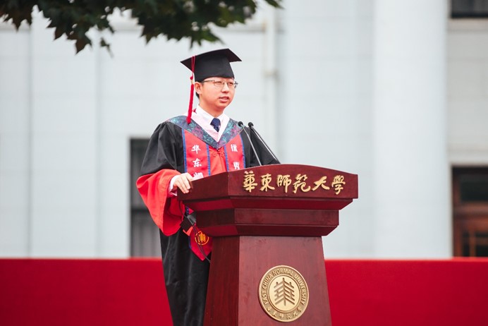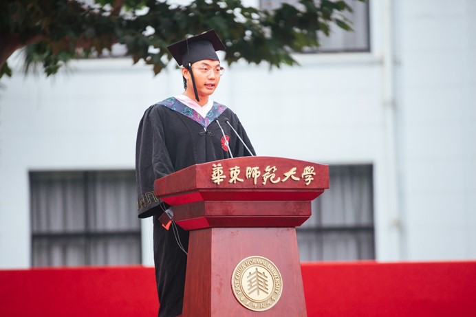 就在前几天,ECNU教育学子公众号上一篇题为”心中有火,眼里有光”的推送在朋友圈刷屏,故事的主人公就是最后一位发言的郝天聪博士。如今,他已经被录取为南京师范大学的专业教师,实现了从”郝博士”到”郝老师”的蜕变。在同学们看来,天聪博士是”学神”一样的存在:读博期间2次获得国家奖学金,并于2019年荣获校长奖学金。站在学部毕业典礼的舞台上,他幽默地表达自己的不舍:”其实不想走,其实我想留。再也吃不到同普路的咸大饼,再也不能时常到丽娃河边散散步,内心真的有种淡淡的忧伤。”回想起6年前到师大参加第一届长三角教师教育联盟研究生论坛,也正是那次机会坚定了他到华东师大职业技术教育学深造的决心,他觉得时光飞逝,还没有享受够在学部求学的时光。他向老师和同学们汇报,做有温度、有宽度、有深度的研究,是他多年以来的治学目标,这也将成为他在教育领域继续深耕细作的方向和追求。