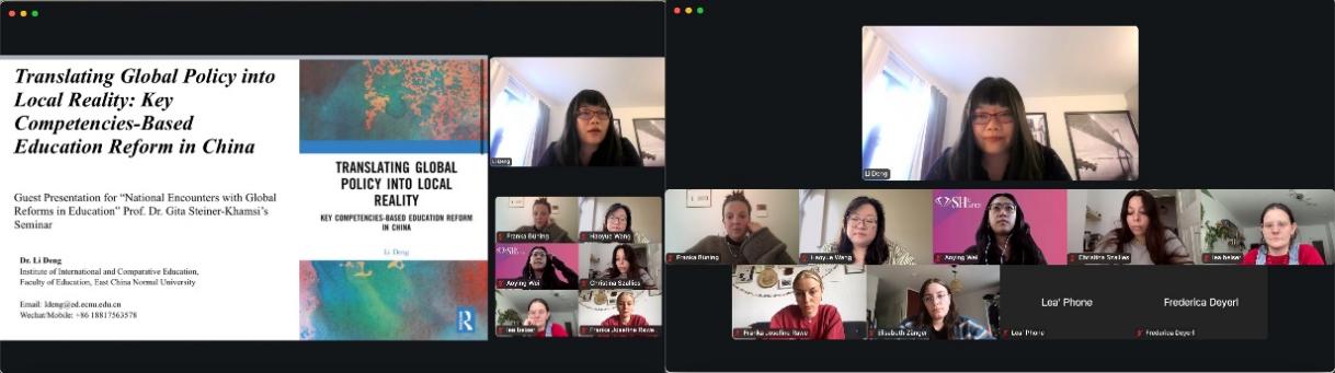 5月19日,邓莉副教授受Gita Steiner-Khamsi教授邀请为哥大与柏林洪堡大学联合开设的研究生课程“National Encounters with Global Reforms in Education”授课,介绍核心素养教育的全球流动以及其在中国的转化路径。本次讲座反响热烈,学生积极互动,展现出国际学界对中国教育改革的浓厚兴趣,提升了比较所研究的国际传播力。