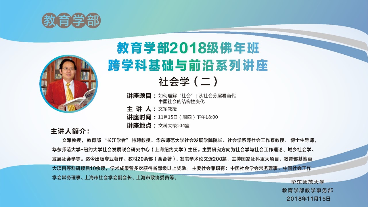 文军教授:教育学部2018级佛年班跨学科基础与前沿系列讲座 社会学(二)