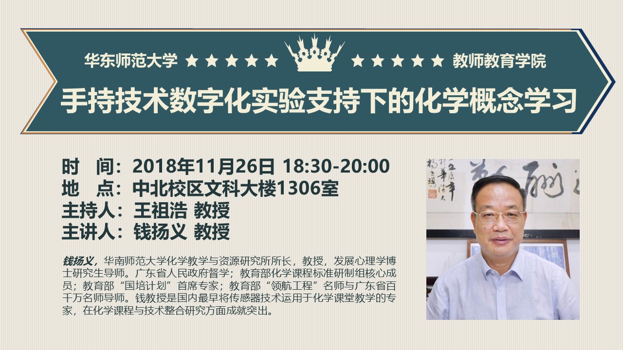 钱扬义 教授:手持技术数字化实验支持下的化学概念学习