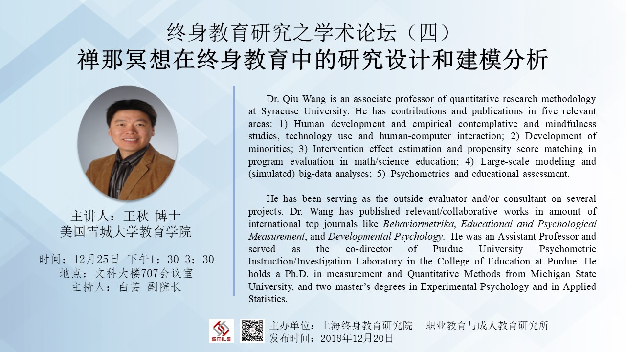 王秋博士:禅那冥想在终身教育中的研究设计和建模分析