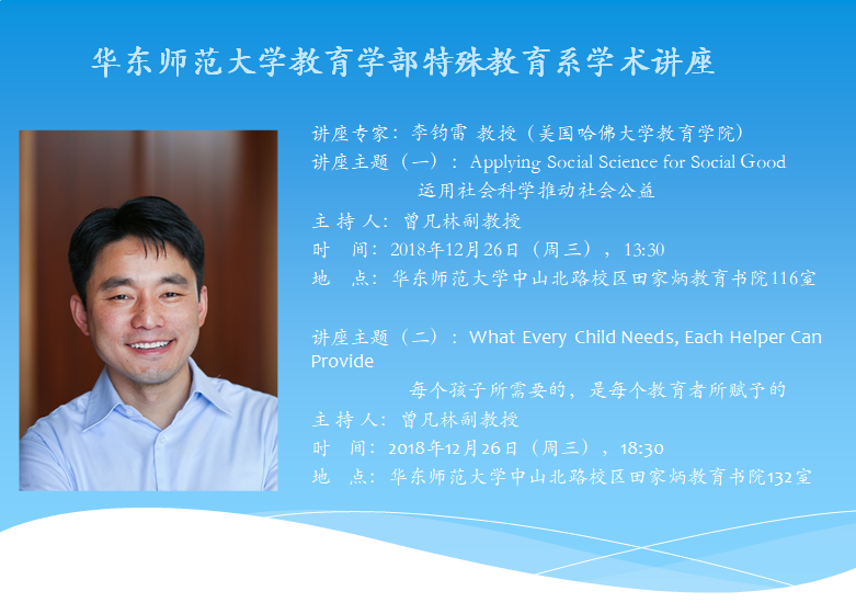 讲座专家:李钧雷 教授(美国哈佛大学教育学院)
