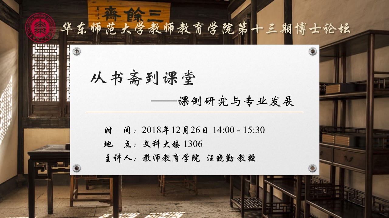 教师教育学院第十三期博士论坛 汪晓勤 教授:从书斋到课堂——课例研究与专业发展