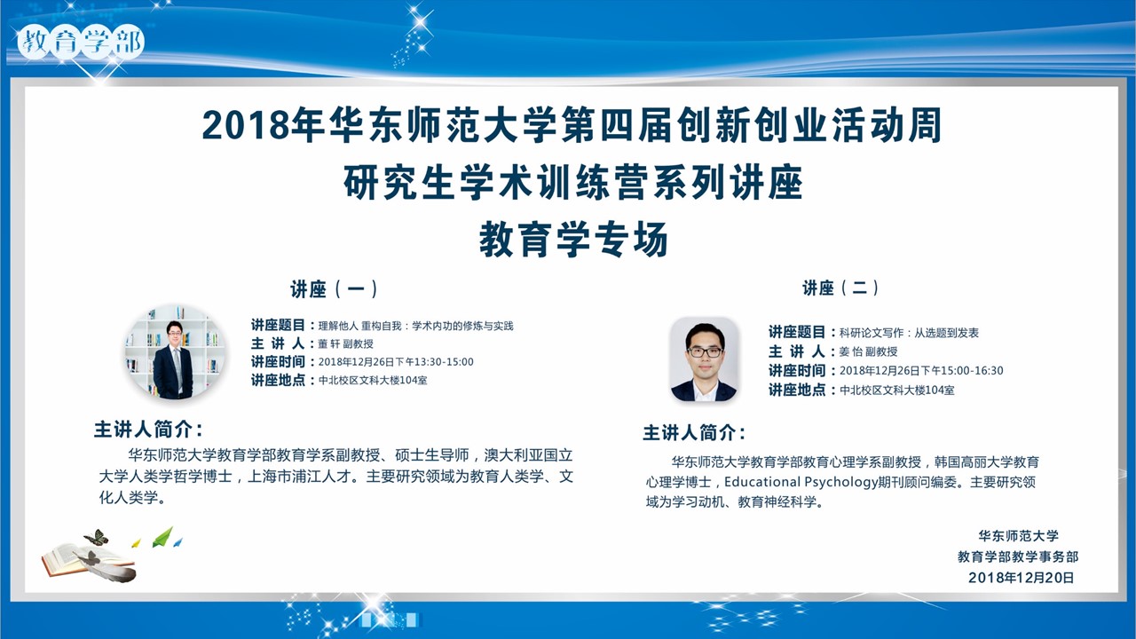 第四届创新创业活动周研究生学术训练营系列讲座——教育学专场